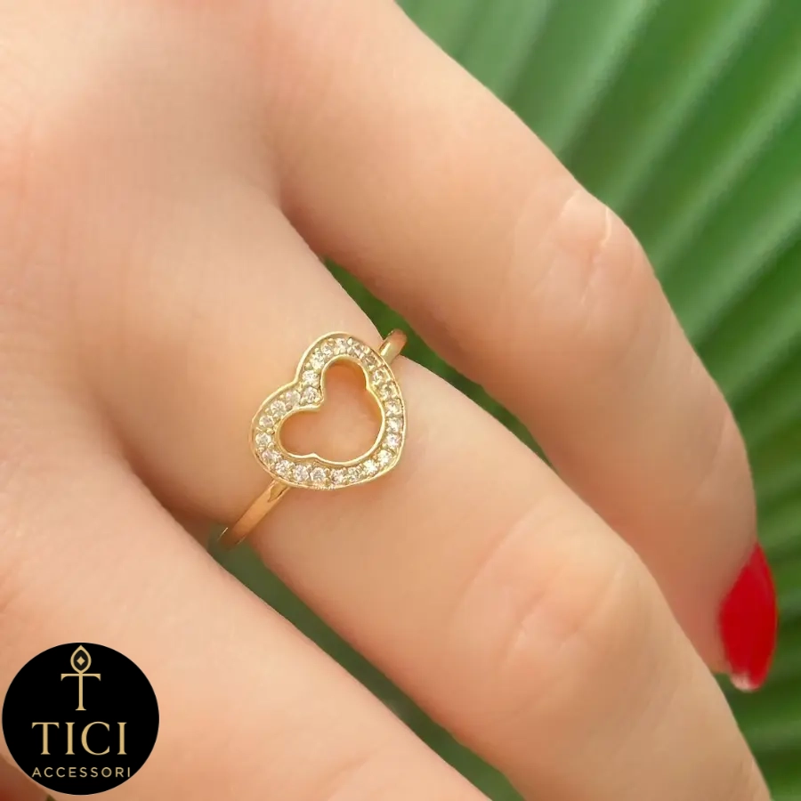 Anel Coração Cravejado com Silhueta Mickey Vazada