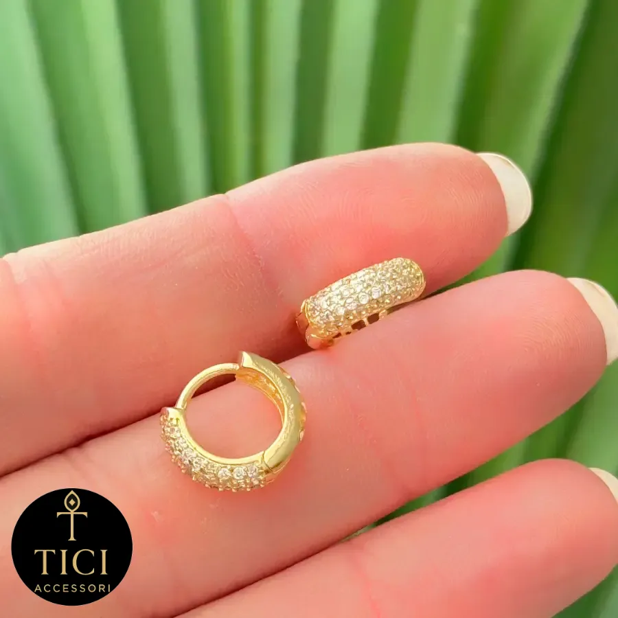 O design é um show à parte: cuidadosamente cravejada com milhares de microzircônias cintilantes, esta argola apresenta múltiplas fileiras reluzentes na sua superfície externa, criando um impacto visual de brilho intenso e contínuo. Mas o glamour não para por aí! Para garantir que você irradie luz de todas as direções, o seu interior também é delicadamente cravejado, proporcionando um efeito “360 graus” que captura e reflete a luz a cada movimento.